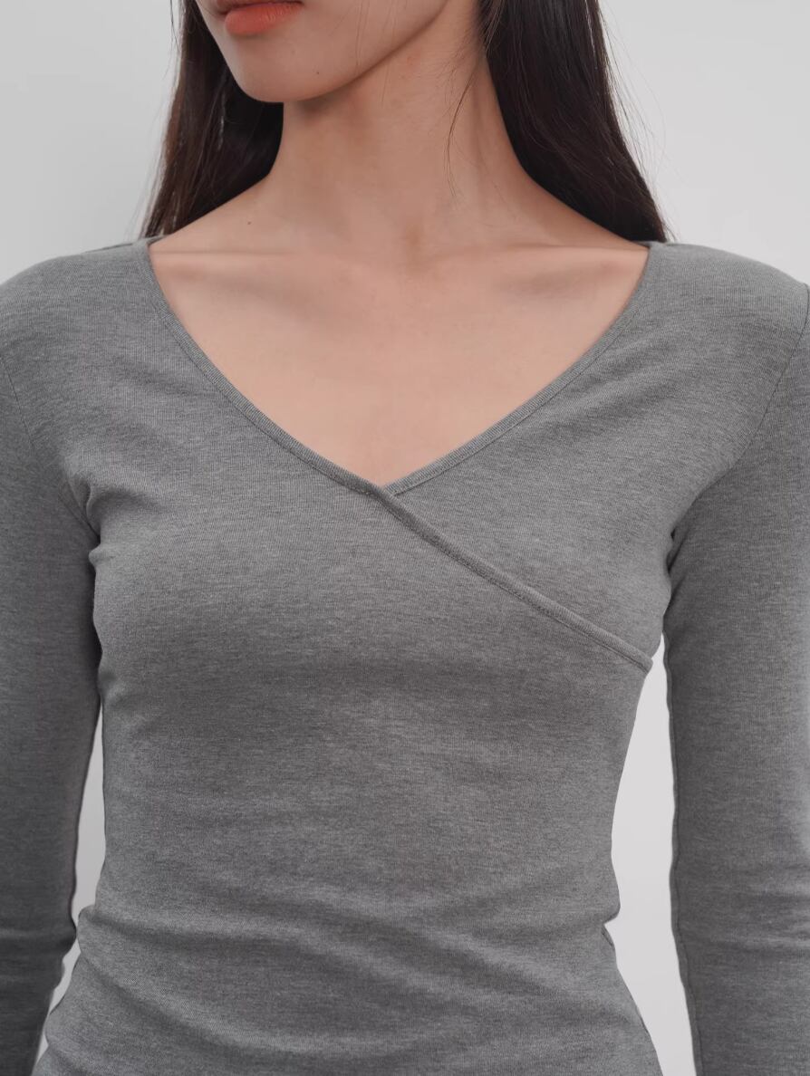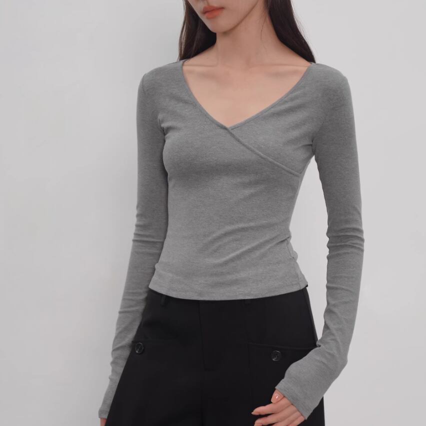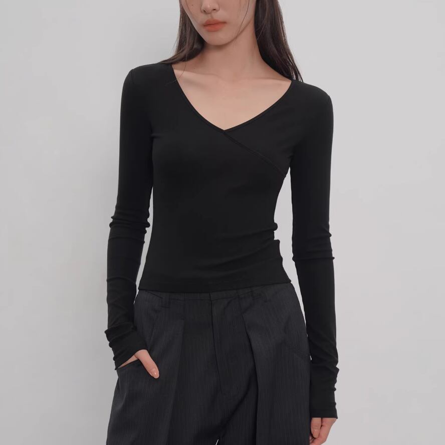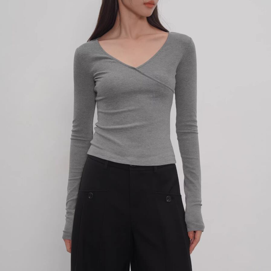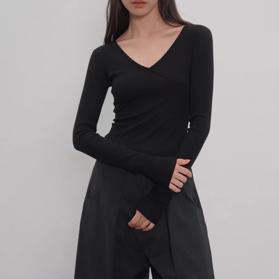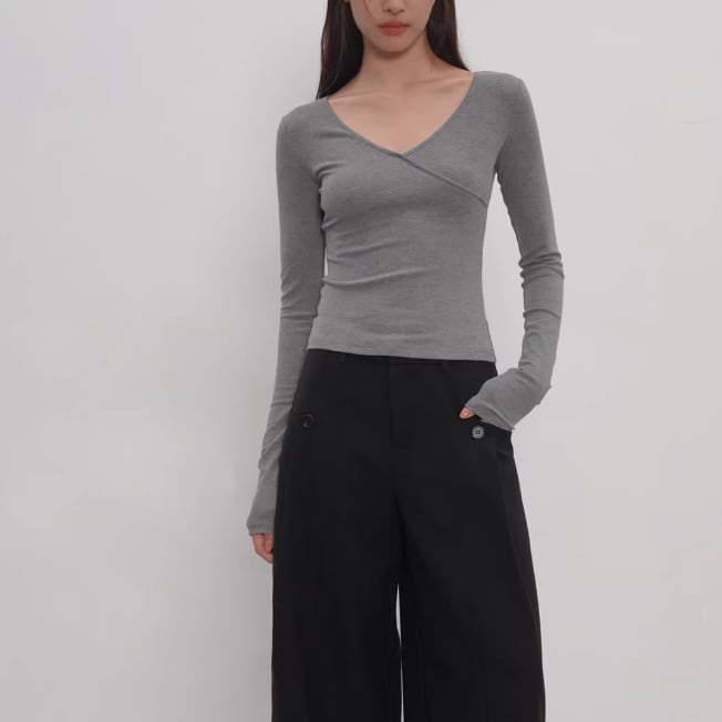 2色/Vネックサイドシャーリングトップス ・21658