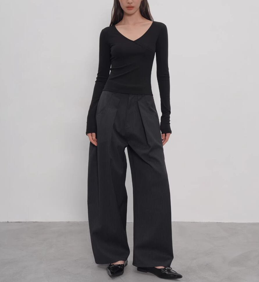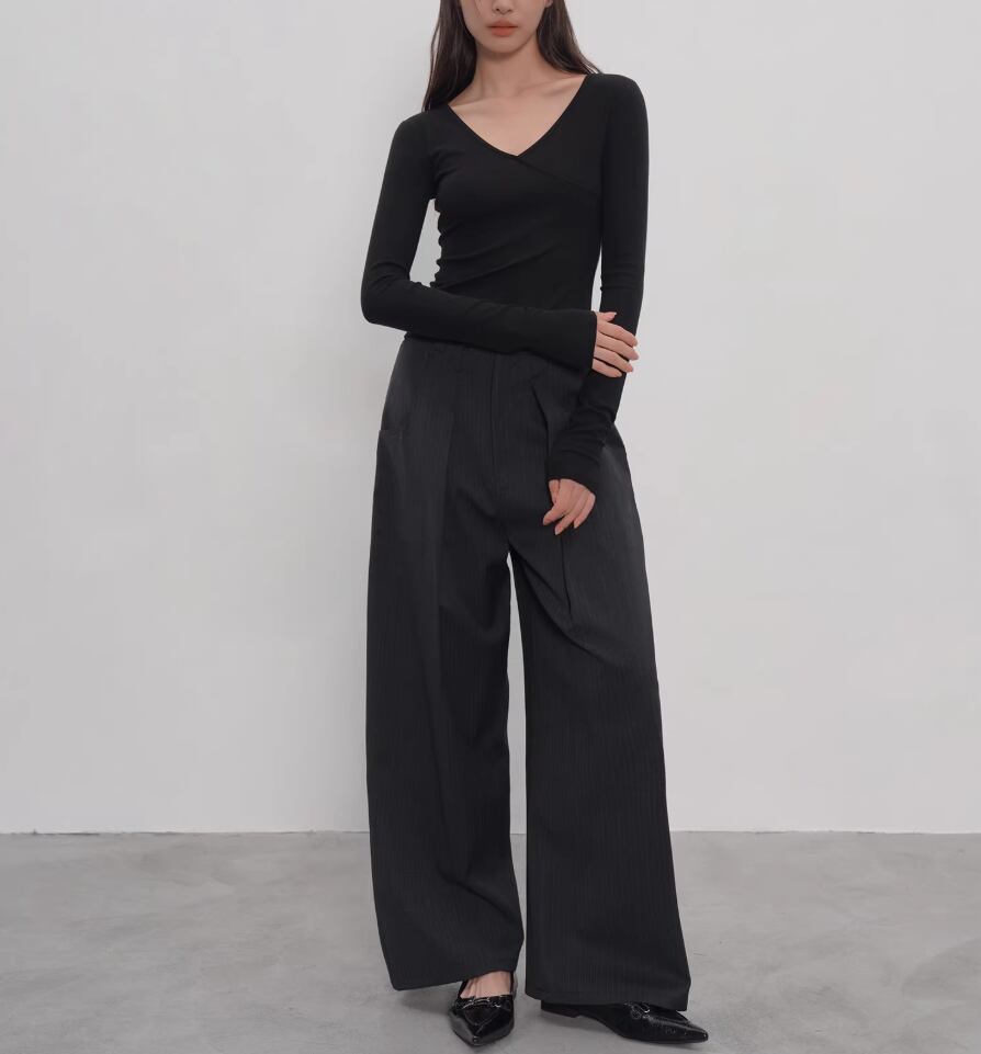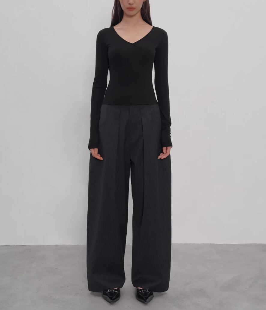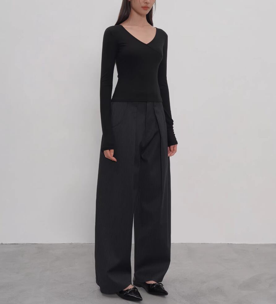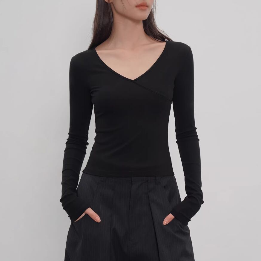 2色/Vネックサイドシャーリングトップス ・21658
