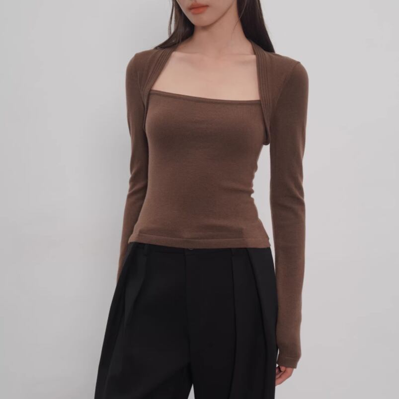 ダブルカラーフリルニットトップス ・21732