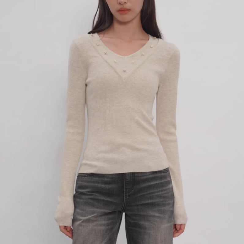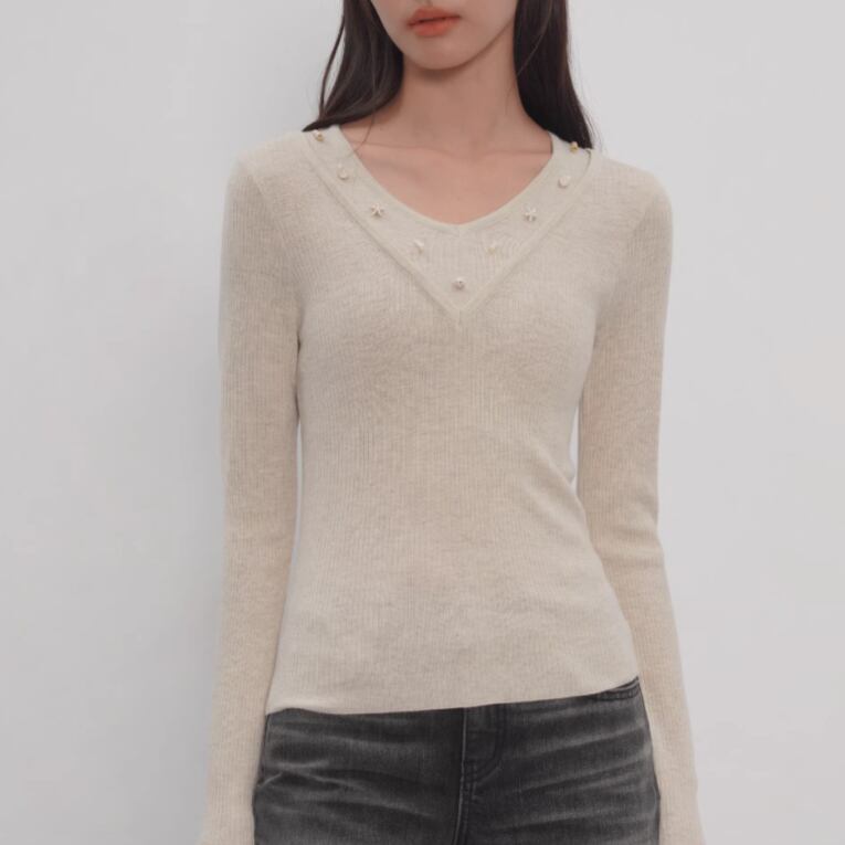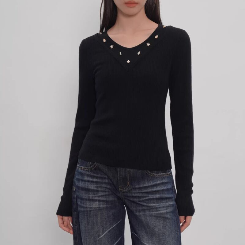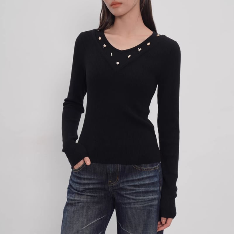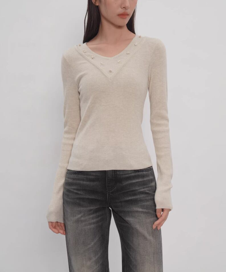 ダブルカラーフリルニットトップス ・21732