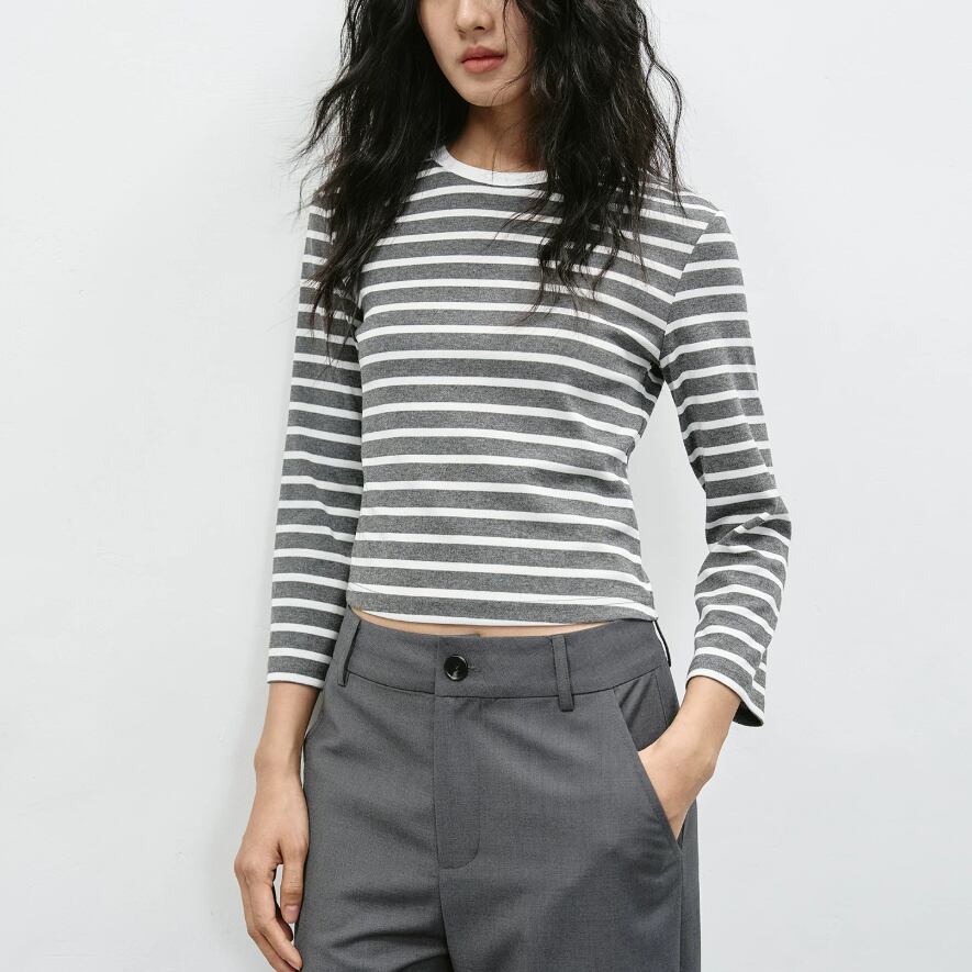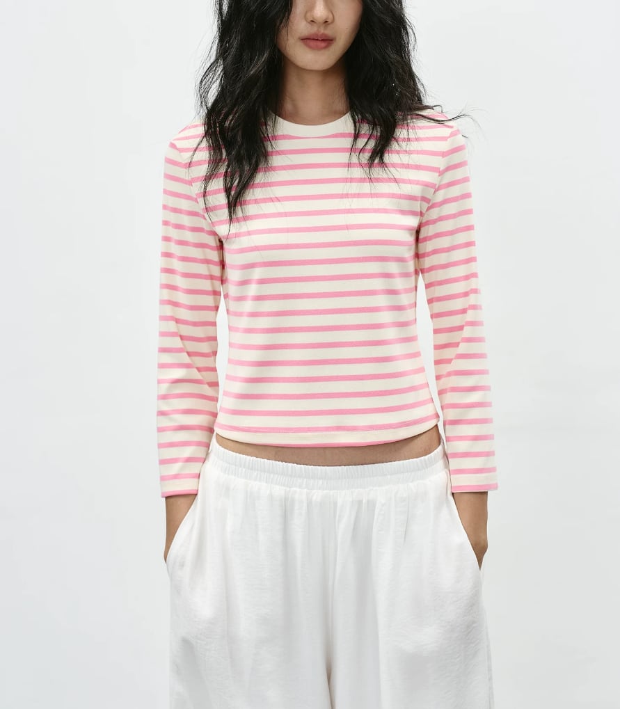 2色/7分袖ラウンドネックトップス ・21844