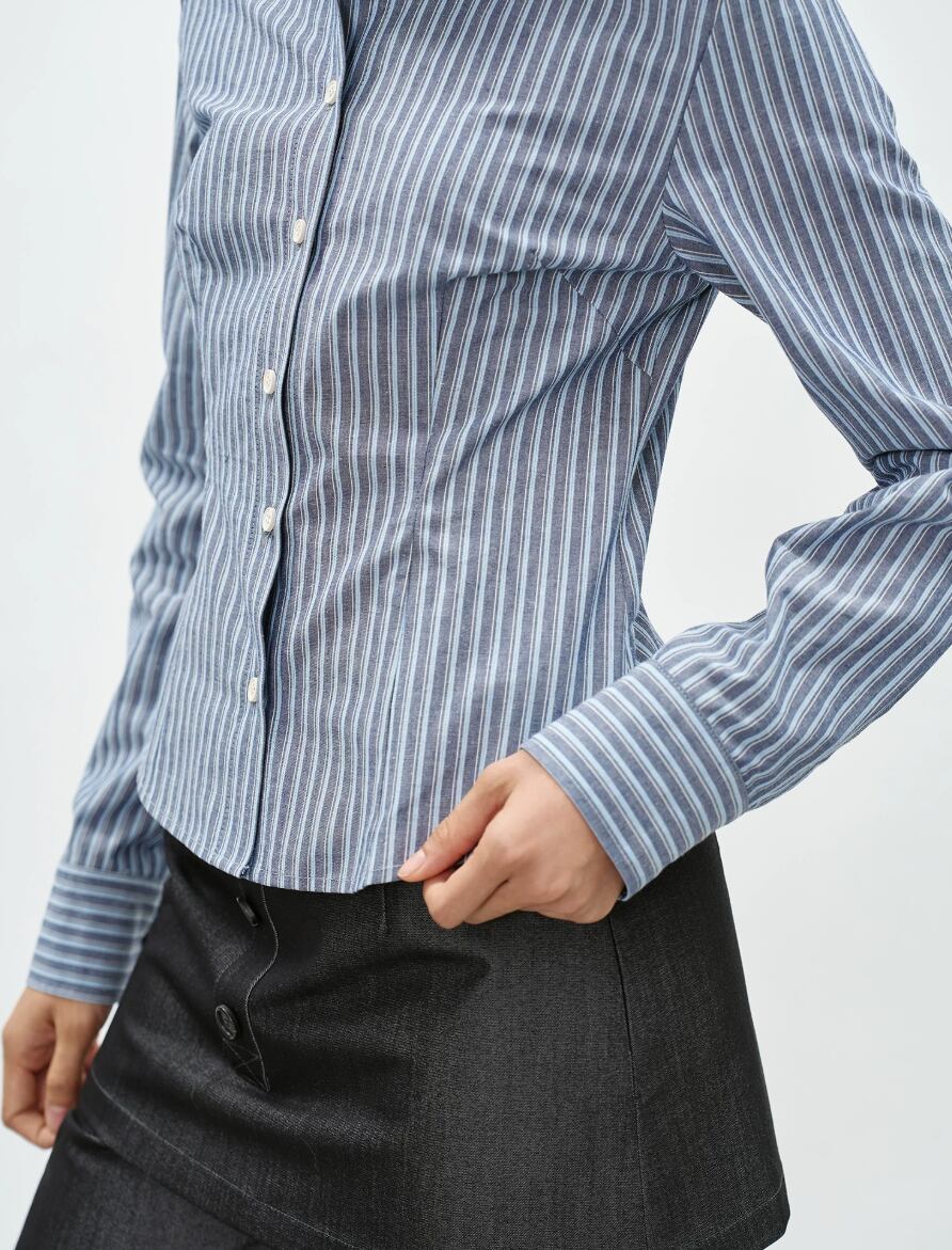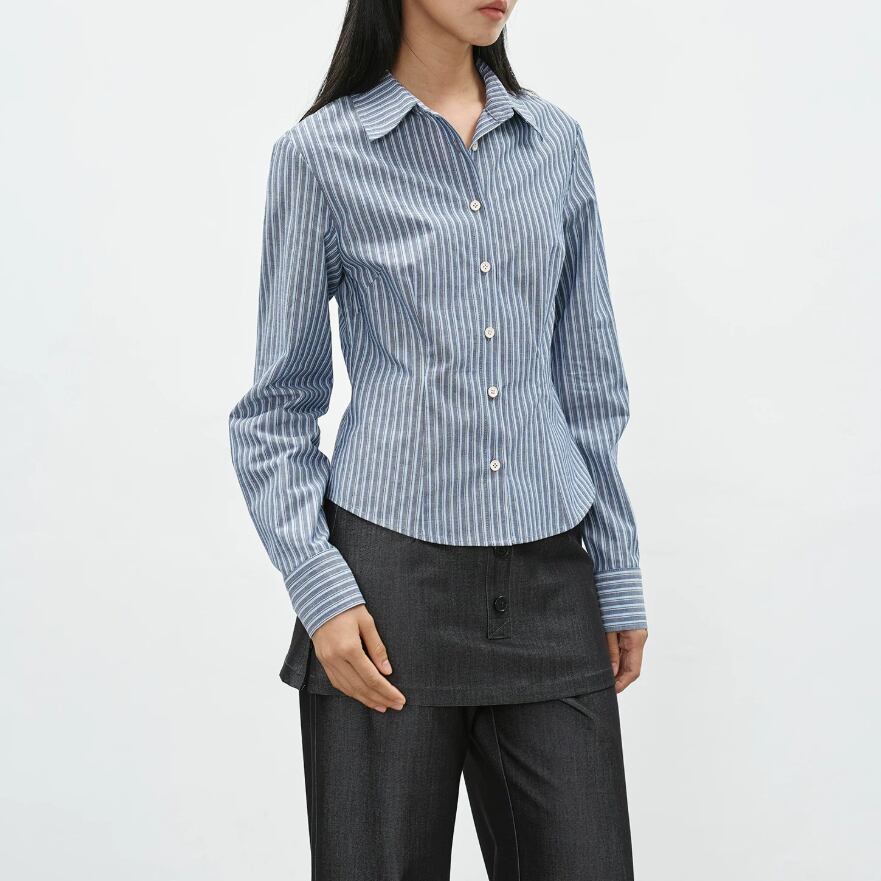 アイレットレースストライプシャツ ・19495