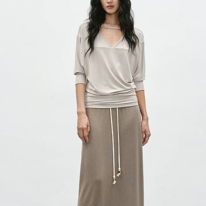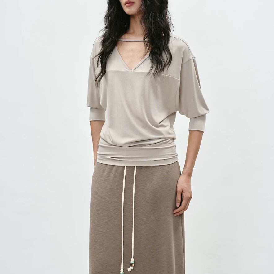 2色/7分袖ラウンドネックトップス ・21844
