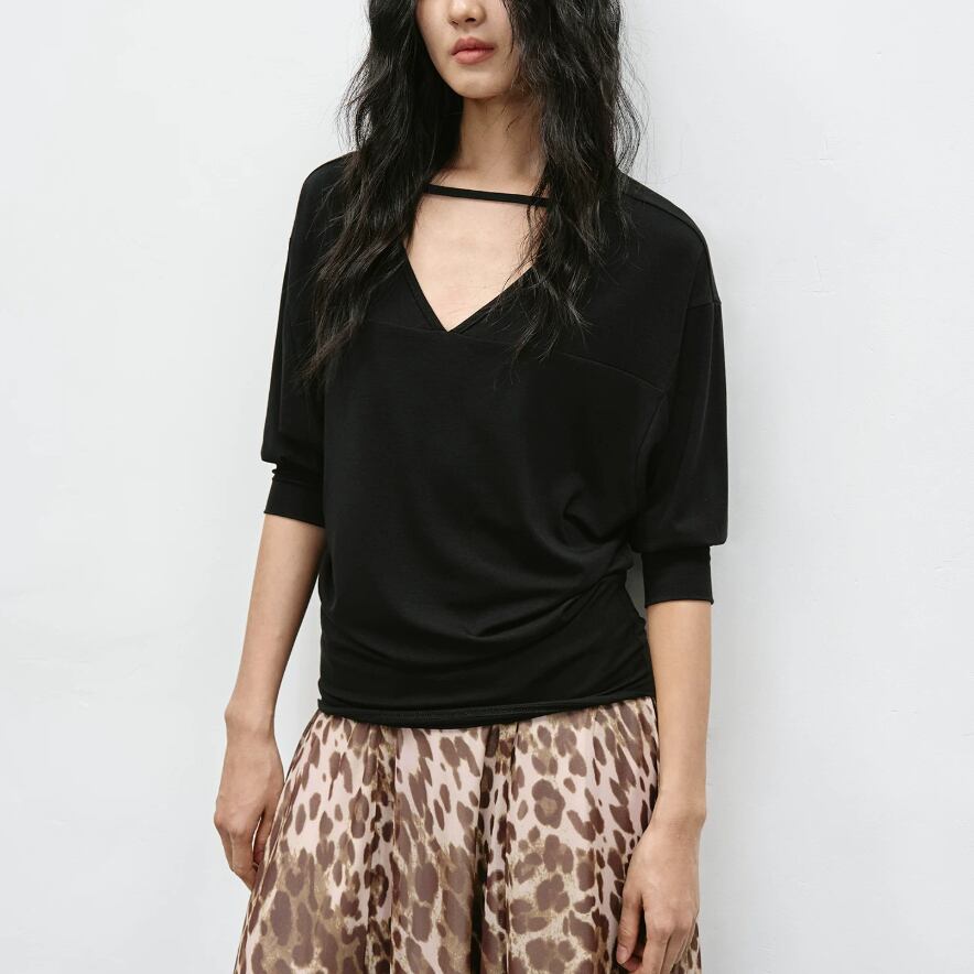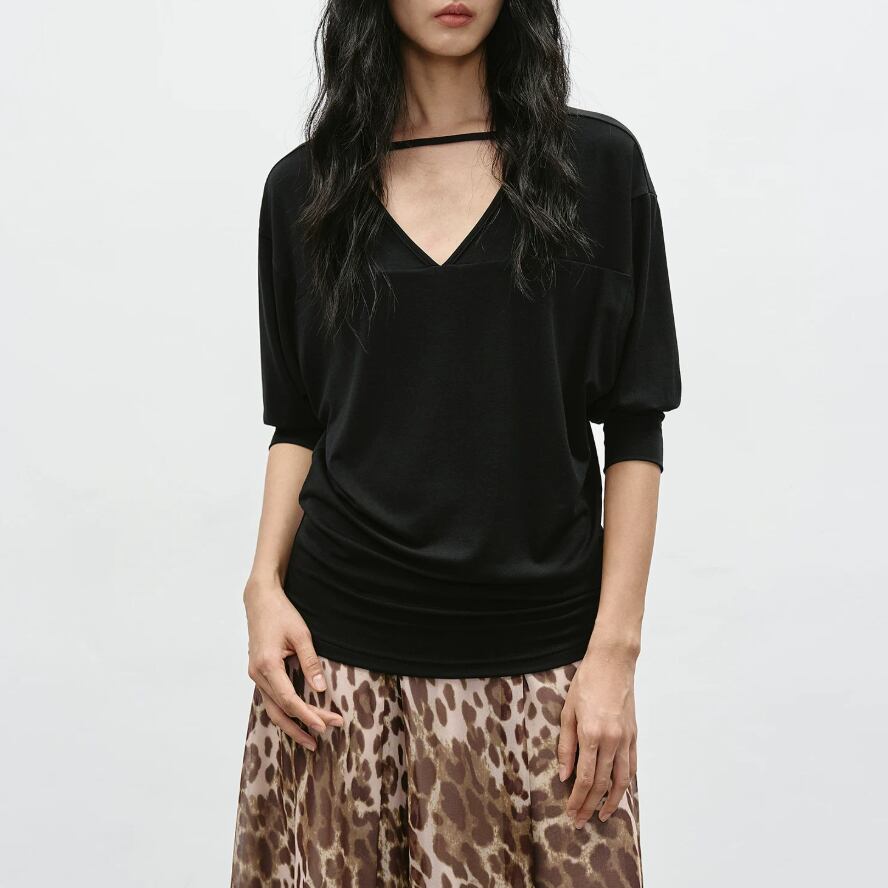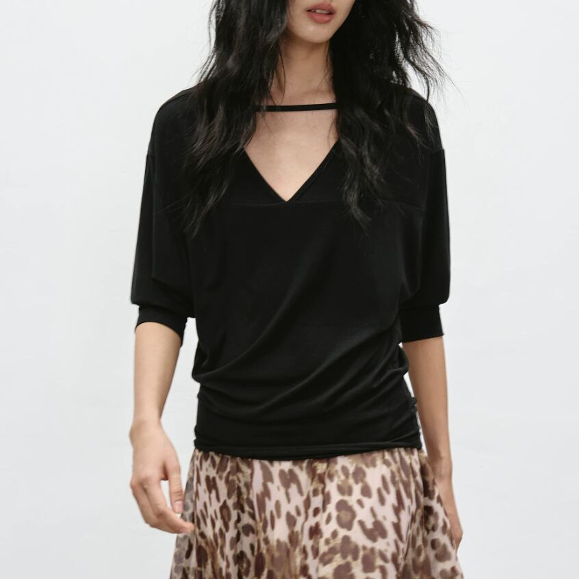 7分袖バイカラートップス ・21840