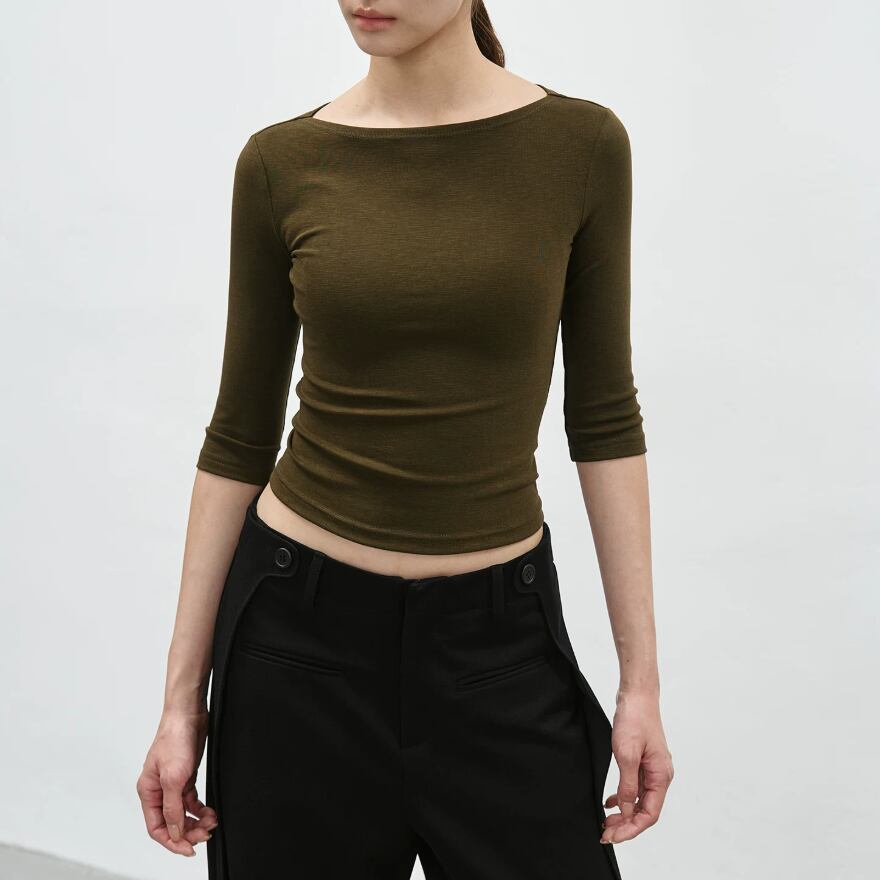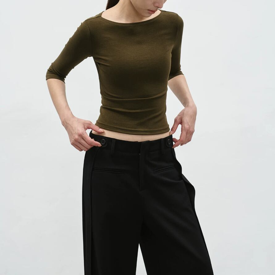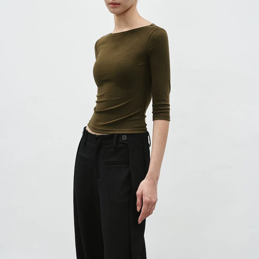 2色/7分袖ラウンドネックトップス ・21844