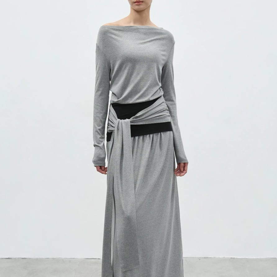 【3点セット】Vネックトップス+ノースリーブトップス+ロングスカート ・21803