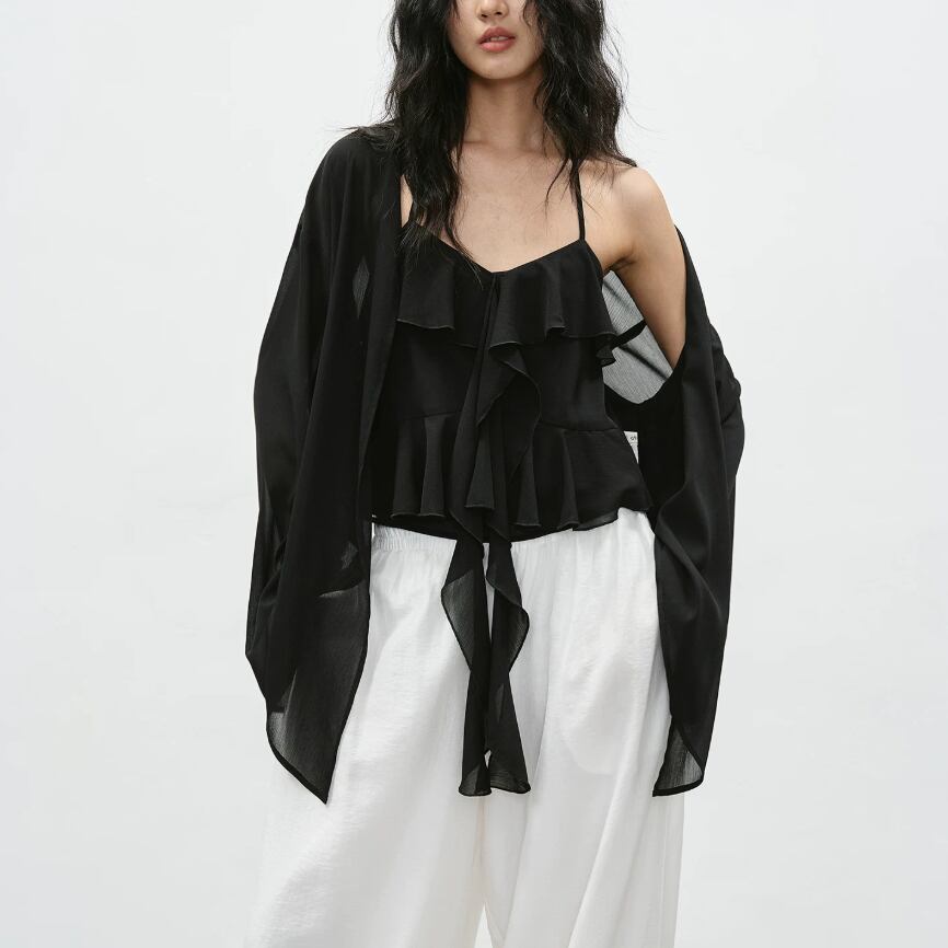 ▽Instagram「新作情報配信中」 フォローお願いいたします。 https://www.instagram.com/stir.clothes/ ▼カラー ブラック ▼サイズ [ Sサイズ ] カーディガン:着丈40cm バスト50cm 肩幅53cm 袖丈53.5cm キャミ:着丈48cm バスト72cm [ Mサイズ ] カーディガン:着丈41cm バスト52cm 肩幅54cm 袖丈54.5cm キャミ:着丈49cm バスト76cm [ Lサイズ ] カーディガン:着丈42cm バスト54cm 肩幅55cm 袖丈55.5cm キャミ:着丈50cm バスト80cm [ XLサイズ ] カーディガン:着丈43cm バスト56cm 肩幅56cm 袖丈56.5cm キャミ:着丈51cm バスト84cm ※1-3cm程度の誤差がある場合がございます。予めご了承ください。 ▼素材 ポリエステル ▼シーズン 春,秋 ▼同じカテゴリの商品はこちら https://www.stir.jp/categories/3047418 ▽お支払い方法 ・クレジットカード決済 ・キャリア決済 (docomo/au/Softbank/Y!mobile) ・後払い決済 (商品お届け後コンビニ払いなど) ▽注意点 ※こちらの商品は決済から10日-3週間前後でのお届けとなります。 ※配送日時指定等に関しては、ご指定できないことご了承くださいませ。 ※できる限り早くお届けできるように手配させて頂きます。 ※検品はしておりますが、もし届いた商品に不備がありましたら、誠実に対応させていただきます。 商品ID:ST021769