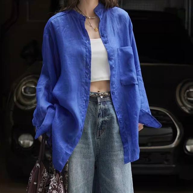 2色/ノーカラーバルーンスリーブブラウス ・17773