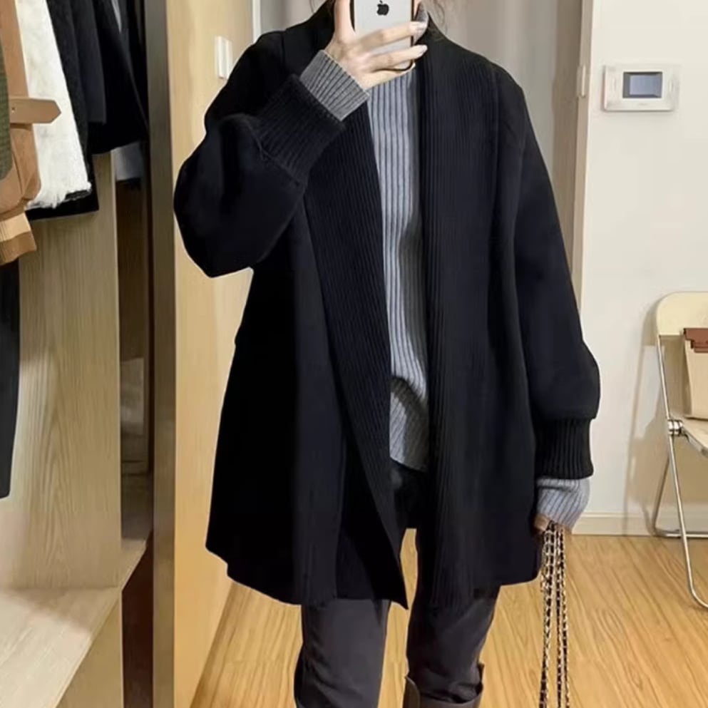 3色/フェイクレイヤードニットカーディガン ・18076