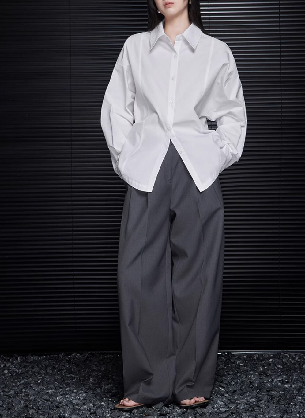2色/ノーカラーバルーンスリーブブラウス ・17773